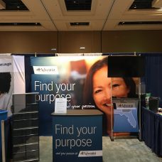 with many design styles to choose from. Companies take full advantage of every inch of this floor space with colorful fabric graphics, interactive experiences and lighting, and shelving that make their exhibit “stand-out” in the crowd. Generally, a Linear Exhibit will have dimensional floor plans with 10’x10′ sq. ft. or 10’x20′ sq. ft.